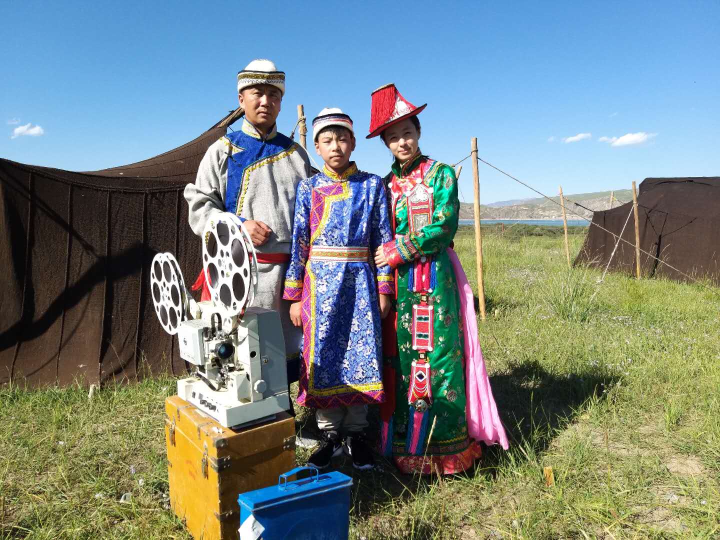 機(jī)器拿到后,驅(qū)車西行六百多公里來到肅南片場,又請來肅南縣的老放映員傳授放映技術(shù),以保障順利拍攝。