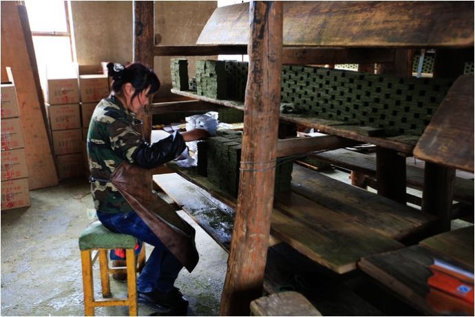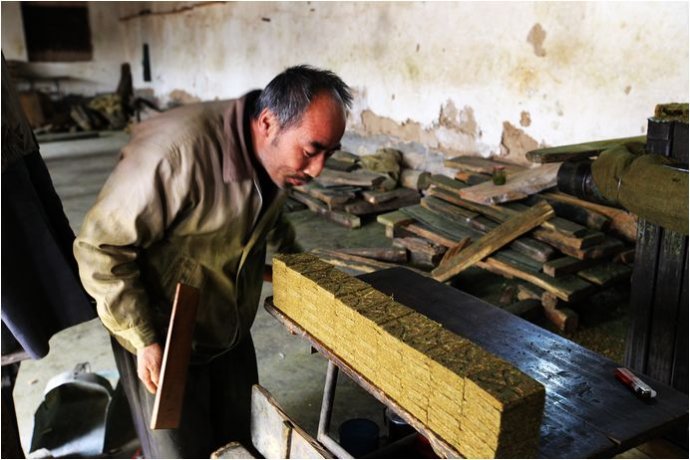 壓好的煙塊就碼放在這個(gè)板上,熟練地老師傅一天忙下來(lái)也就制作八百塊左右,按照計(jì)件工資,一個(gè)月下來(lái)也就三千多塊錢。