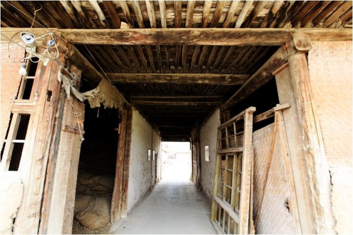 從成品車間出來(lái),要從這個(gè)通道穿過(guò)去進(jìn)入另一個(gè)套在一起的小四合院。這是原來(lái)的老煙坊的房子,破損很嚴(yán)重,一幅破敗的景象。